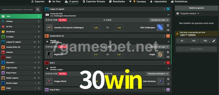 A aposta 30win oferece aos jogadores a experiência mais conveniente de apostas em eSports!